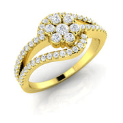 A sleek twisting style highlighted by a stunning central cluster of sparkling round