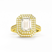 A fiery emerald-cut gemstone centerpiece that commands attention.