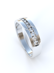 This luxurious band features a line of brilliant stones set in a channel. Great for any man who loves himself some sparkle!