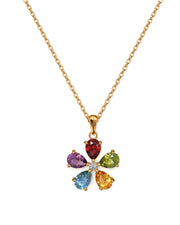Five semi-precious stones come together to form this lovely flower with center diamond.