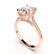 A classic solitaire with a secret sparkle—this hidden halo design adds a subtle shimmer beneath the center stone, for beauty that shines from every angle.